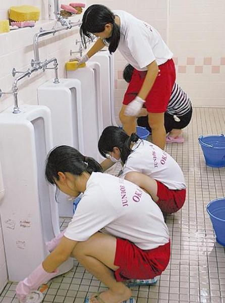 掃除のおばちゃん研修。彼女らは40年修行したのち現場に出る。