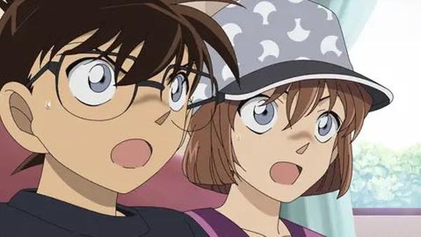 バスの映像に「工藤新一(メガニをかけた少年)と宮野志保(茶髪の帽子をかぶっています)」と出た