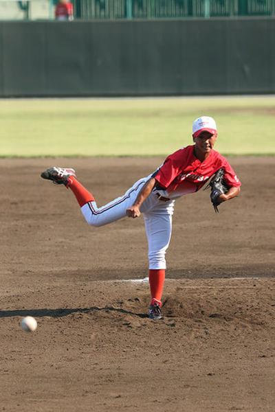 グローブが脇に刺さった汗