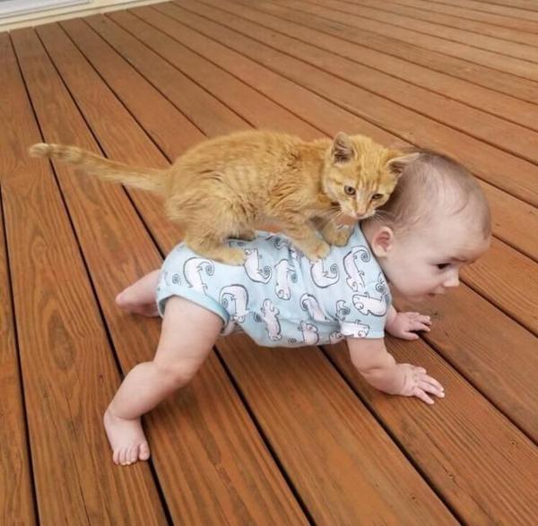 赤ちゃん「いくよ!せーの…」子猫「漢字の六!」赤ちゃん「しっぽが上に立ってないよー」子猫「あっ、ゴメン…」