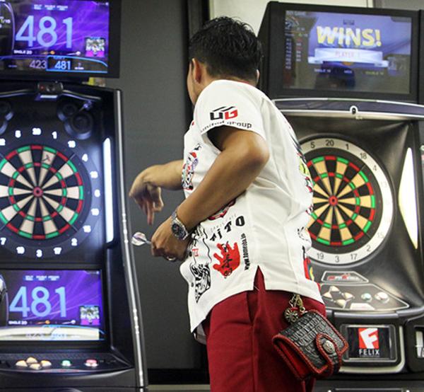 一人用あっち向いてホイマシーンと、下の指差し方がジョジョ風な伊藤。