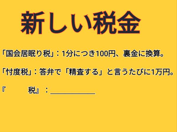 政党を取る為とか言って国会の時間と税金を無駄に使用する税/自分で換算してきっちり払え