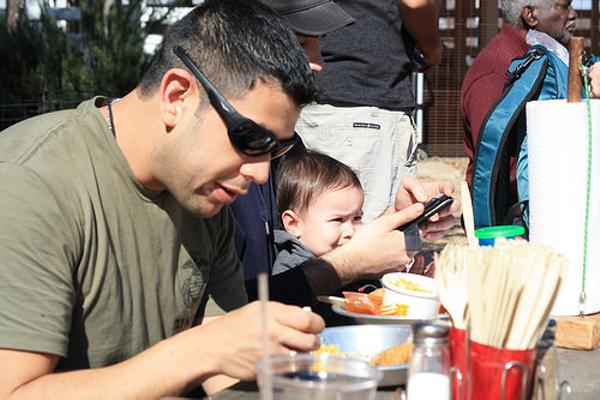 父親「外で食う飯はうまい!」 子供「画面が反射してツムツムできねぇ」