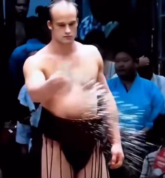 ふすまを開けて即座に膝蹴りを食らわす練習をしている