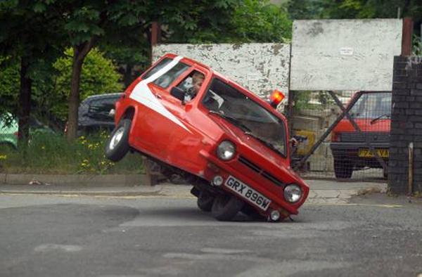 脱輪したと思いきや、バランスを保っているッッ!!