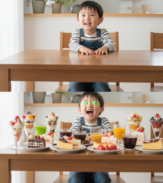 好きな食べ物を出す能力の副作用で全て緑色に見えるから全然食欲湧かないぞ!