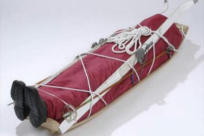 冬の夜空の冷え込みがこたえるので新しいソリの乗り方を考え中のサンタ