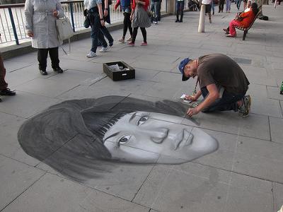 天才路上アーティストに引ったくり犯の顔を尋ねたら見物客までできた
