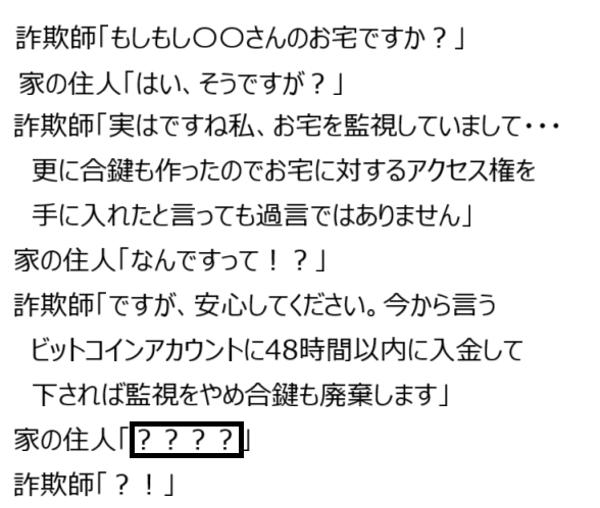 私もお宅の合鍵を作りました 今から言うビットコインアカウントに48時間以内に入金してください