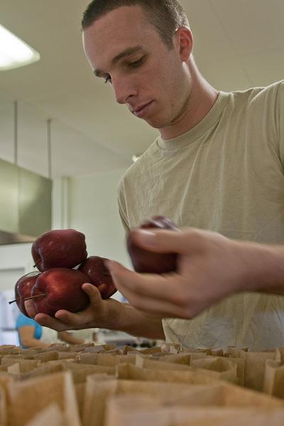 学校からのプレゼントをラッピングしていて最後に毒リンゴをどれに入れようか迷う先生